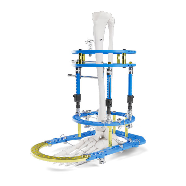 XRing™ is a versatile circular external fixation system developed for both traditional and modern reconstruction methods. At its core, the system features intuitive primary components designed for a broad range of complex reconstruction applications, supporting both static and dynamic frame configurations. Modern advancements are designed to facilitate stable anatomic frame construction, enhanced component versatility, and improved overall surgical efficiency.